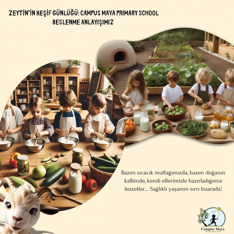 Campus Maya Koleji'nde beslenme, sadece yemek yemek değil; sağlıklı gıdalarla büyümenin, paylaşmanın ve üretmenin bir parçasıdır. Çocukların doğayla bağlantılı, bilinçli beslenme alışkanlıkları kazanmasını önemsiyoruz.
